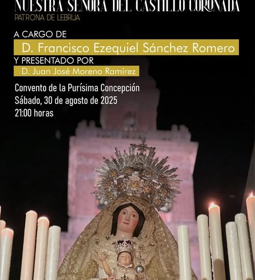 El próximo sábado, 30 de agosto, tendrá lugar la XXVI Exaltación de las Glorias de Nuestra Señora del Castillo, Patrona de Lebrija. Este año, en su XXVI edición, serán recitadas por N.H.D. Francisco Ezequiel Sánchez Romero, el cual será presentado por N.H.D. Juan José Moreno Ramírez. La misma tendrá