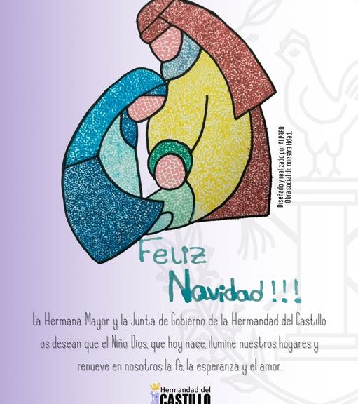 La Hermana Mayor y la Junta de Gobierno de la Hermandad del Castillo os desean una Navidad vivida desde la fe, la cercanía y la esperanza. Que el Niño Dios, que hoy nace para el mundo, ilumine nuestros hogares y fortalezca los corazones. Un año más, nuestra felicitación se