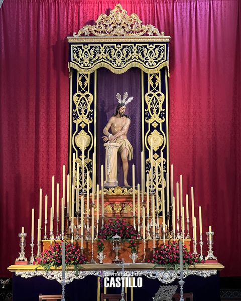 Nuestro Padre Jesús atado a la columna ya preside el altar levantado ex-profeso para la celebración del Solemne Triduo penitencial y Función Principal de Instituto.
