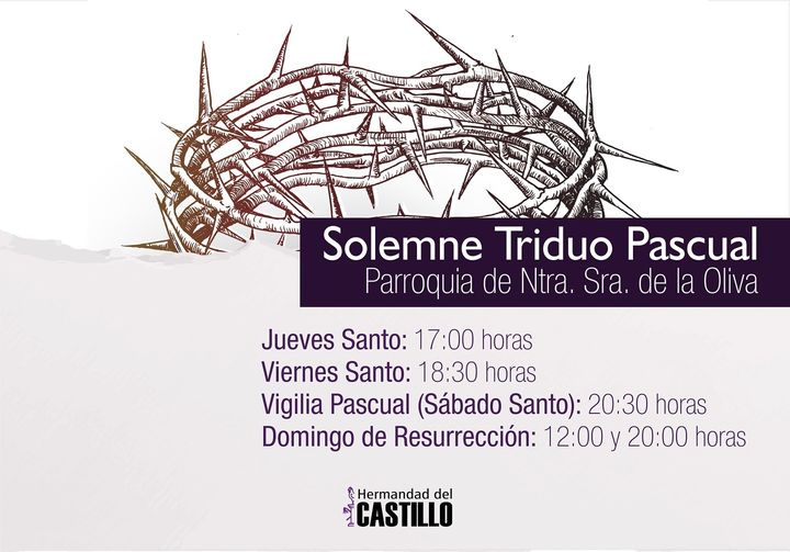 Ponemos en conocimiento de todos nuestros hermanos y devotos el horario de las Solemnes Eucaristías que nuestra Parroquia celebrará con motivo del #TriduoPascual y la #Resurrección de nuestro Señor.